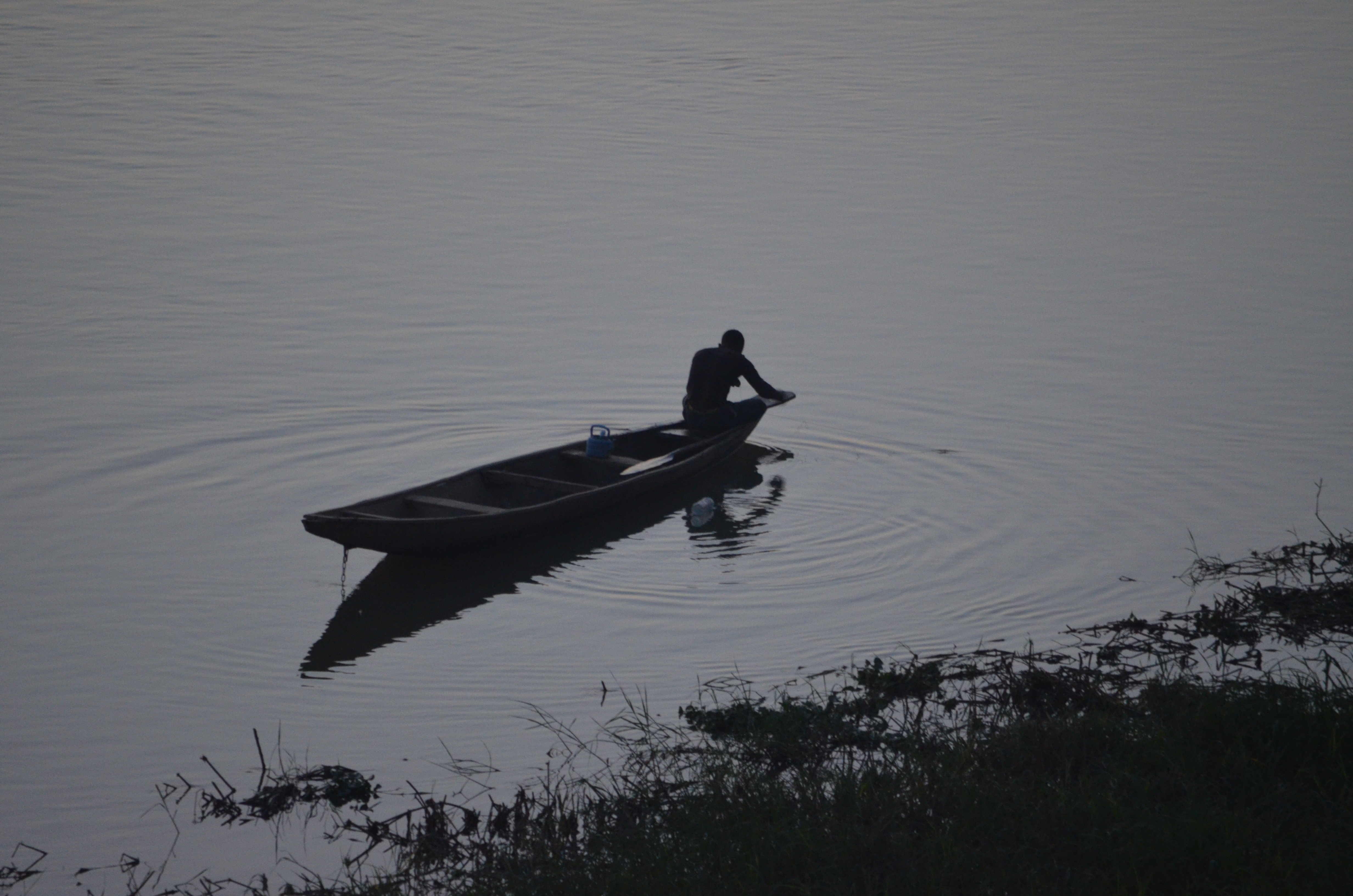 Fishing from a pirogue below the Grand Hotel (photo credit, Dad)