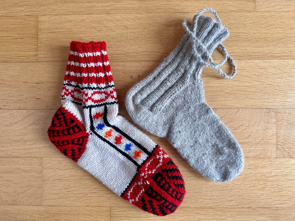 I believe that knitting techniques and styles can act as signatures of particular places and the people within those places. The way a person knits the toe or heel of a sock is kind of like the way a person shapes a ceramic pot or a stone tool. In archaeology, pots, tools, and the techniques for making them define cultural influences and are used to map possible migration, interaction, and exchange. Can knitting be used in the same way? Being able to map particular knitting techniques might help us ‘see’ ancient networks of interaction. However, in order to do this, we have to document what I call ‘old style,’ ‘heritage,’ or ‘indigenous’ knitting techniques (how to identify and what to call this kind of knitting is a whole other topic for debate). What I am referring to is the type of knitting people did before the dissemination of written knitting patterns, enforced colonial craft education, and YouTube.* Collaborating with those who still posses this type of knowledge and examining knitted artifacts from the past can help us better understand knitting styles and how they may (or may not) have influenced one another. The more information we have from these sources, the more reliable and clearer the picture will be.