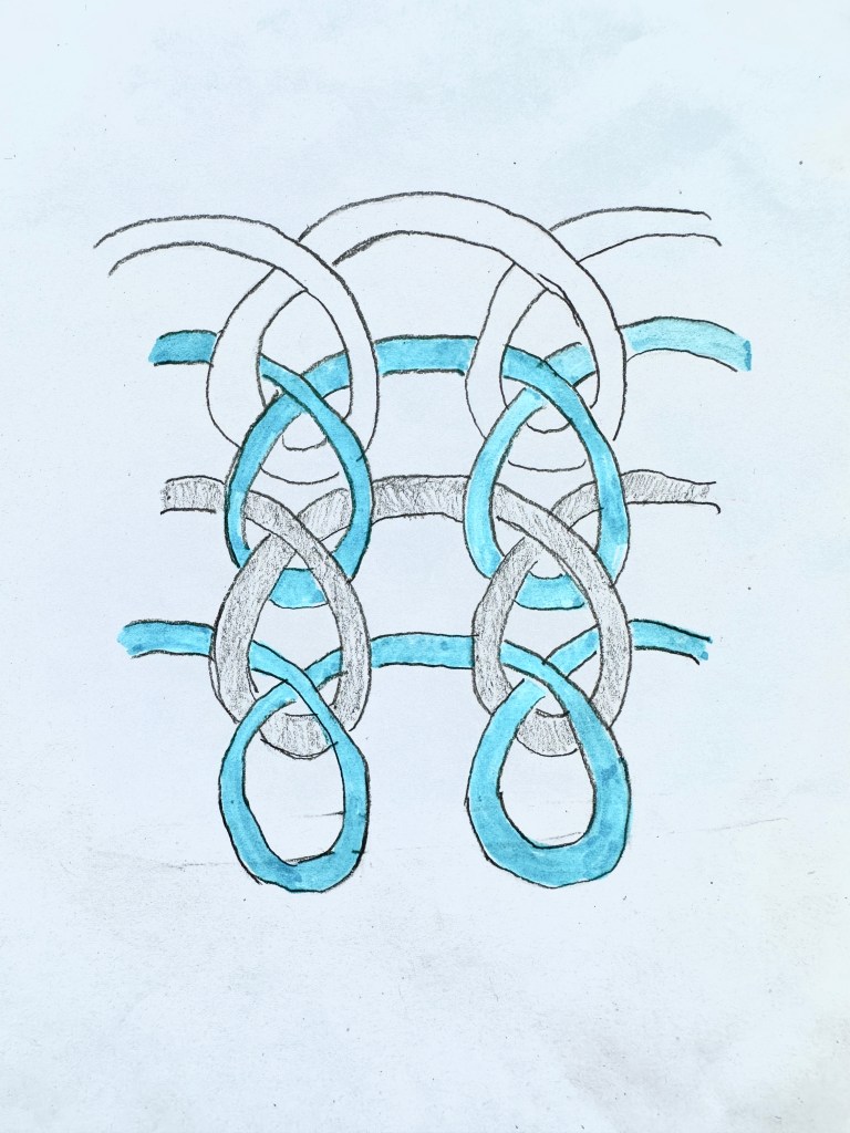 While this experiment does not prove that knitting came from nalbinding, I believe it demonstrates that the motions and ideas associated with knitting today could have evolved from mending nalbound objects. Additionally, the hole I worked with in this experiment only represents one type of mending problem. There are numerous ways a sock, or other nalbound object, could be damaged. The techniques I used here may not work in all mending contexts, or I might need to modify how I use the needles and yarn to mend different kinds of holes. Further experimentation is necessary to develop a deeper understanding of mending cross-knit looped nalbound fabrics, and a close examination of the mended fabrics is also needed to analyze the structure of the mended sections in comparison to undamaged fabric.
